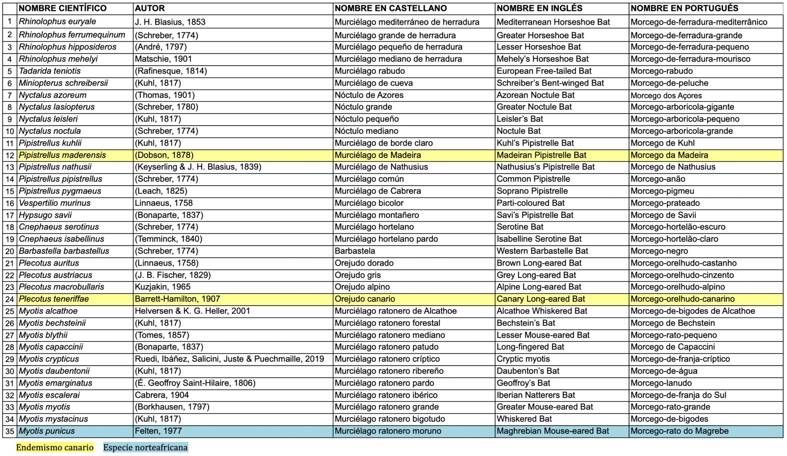 - Descárgate el Listado de Quirópteros de España, Gibraltar y Portugal
